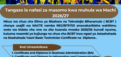The Principal,BIHARAMULO COLLEGE OF BUSINESS AND TECHNOLOGY (BCBT) invites suitably qualified candidates for admission into various programmes for March intake 2026/27. Click Here To Apply